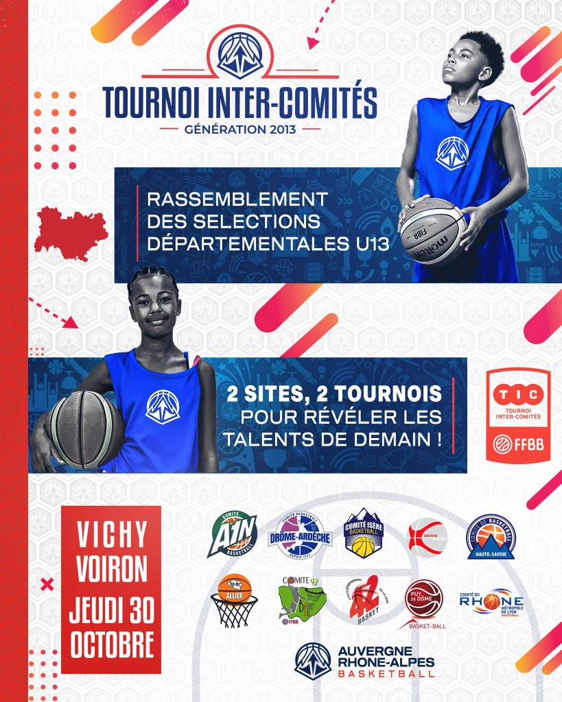 Les Tournois Inter-Comités U13 (TIC U13) reviennent cette saison pour rassembler les meilleurs jeunes basketteuses et basketteurs de la région Auvergne-Rhône-Alpes nés en 2013. Chaque année, ces tournois réunissent les sélections masculines et féminines U13 (né en 2013) issues de 10 comités départementaux du territoire.